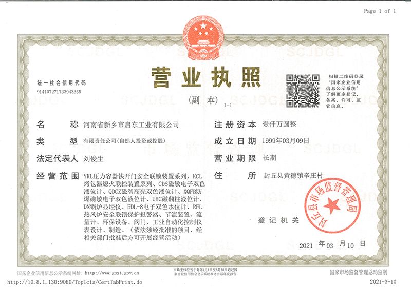 河南省新鄉市啟東工業有限公司始建于1987年,是專注研發、生產自動化儀器儀表(主要與壓力容器、鍋爐等容器配套使用)的廠家。主要產品有液位計(磁敏雙色型、磁翻柱型等)系列、烤包器熄火聯控裝置系列、壓力容器快開門安全聯鎖保護裝置系列、鍋爐報警器系列。二十多年來,公司產品暢銷國內并遠銷俄羅斯、蒙古與東南亞,深得廣大用戶的信賴和好評。我們多年來致力于自動化儀器儀表的研制生產,公司現具有完善的生產、試驗、檢測手段和設備??萍紕撔?、誠信服務,是我們不變的經營理念,我們將以強有力的技術支持及售后竭誠為客戶提供良好的服務?! ?012年我公司成功研發了KCL系列烤包器熄火聯控裝置,并于2013年2月2日榮獲中華人民共和國國家知識產權局辦法的《實用新型**證書》<**號:2021202257735>該產品廣泛應用于唐鋼等大型鋼鐵企業,為烤包器安全作業提供了有力的保障?! ?002年我公司成功研發磁敏電子雙色液位計獨特的高亮度LED紅綠雙色顯示,獲得了專家的首肯和用戶的一致好評。在此基礎上我公司研發人員十年磨一劍,致力于XQFB-1防爆型磁敏雙色液位計的研發,于2013年12月27日由國家防爆電器產品質量監督檢驗中心檢驗合格并頒發防爆合格證書<編號:cnex19.0883>。該產品性能得到了充分的發揮,廣泛應用于含有Ⅱ類A·B級T1-T4組可燃氣體或蒸汽與空氣混合形成的爆炸性混合物的0區、1區危險場所。連接用戶DCS或PLC系統實現遠距離集中顯示和控制,從而實現節能、數字化管理。為用戶增加了一定的經濟效益和社會效益,。2014年公司成功申請了夢潤儀表的logo,新的品牌新的形象,夢潤儀表是啟東的LOGO, 歡迎新老用戶前來洽談合作。  我們一如既往地注重科研的投入,憑借產品的不斷更新、加大科技含量,進一步拓展市場。我們相信品質成就未來,以過硬質量、優惠價格、完善的售后服務熱忱歡迎廣大客戶來我司視察指導、洽談業務;精誠合作,共創輝煌!